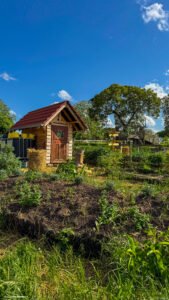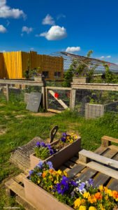 Le potager est à l’image de la ferme : sincère, vivant, bien pensé. Buttes en permaculture, compost maison, paillage, plantations en fonction des saisons, arbres fruitiers, plantes médicinales… Ici, on apprend en faisant, on comprend en touchant, on se reconnecte à la terre. Pas de chichis, juste du concret, de la biodiversité, et beaucoup d’amour des plantes.