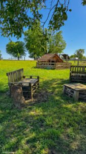 Alors en 2022, avec une bande de copains aussi motivés qu’elle, elle fonde l’association Hexe Hoft, installe les premières clôtures, récupère des palettes, taille des branches, construit des cabanes, dégage des chemins, aménage une buvette, sème un potager… et transforme un terrain à l’abandon en une vraie bulle de vie.