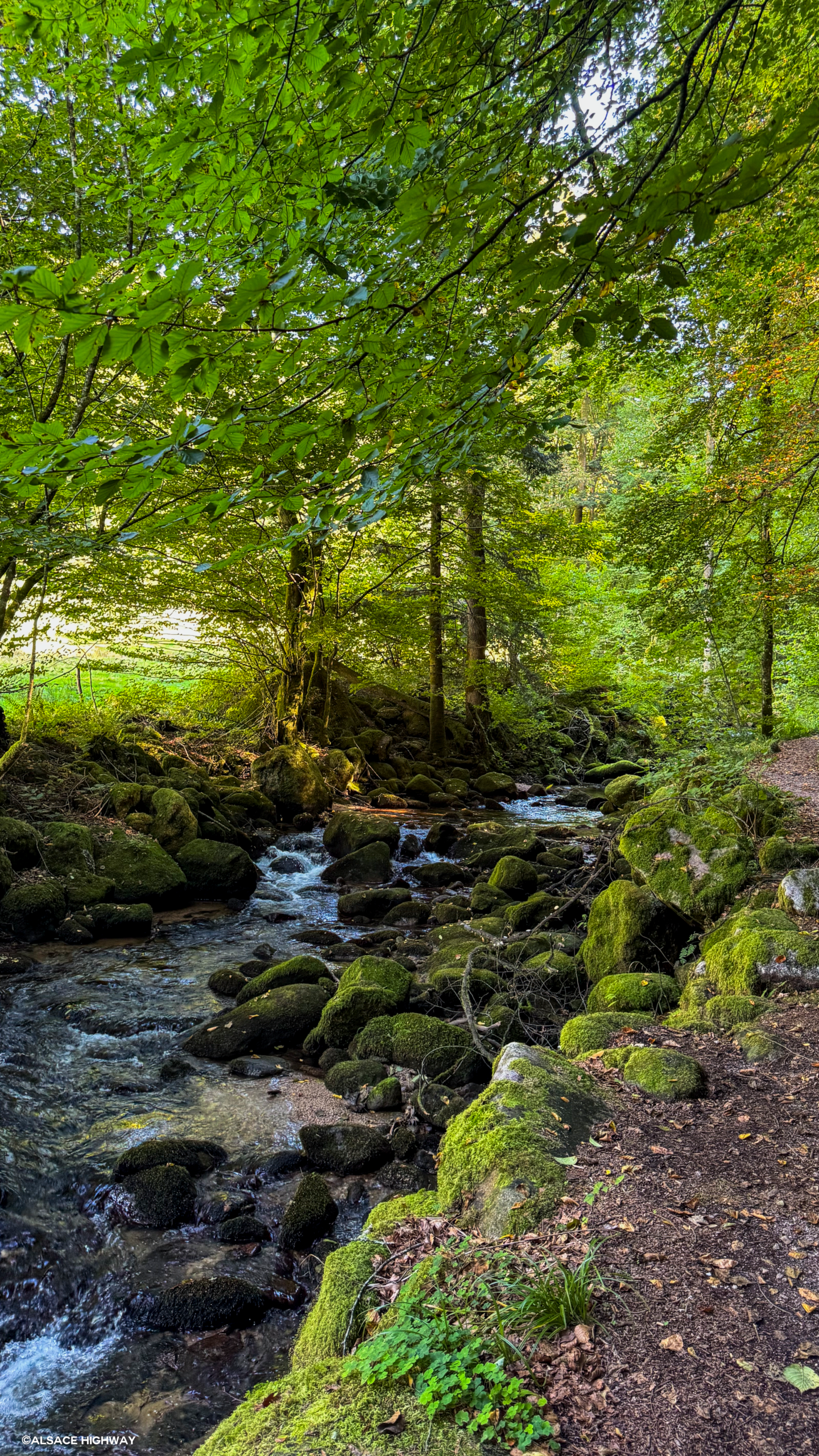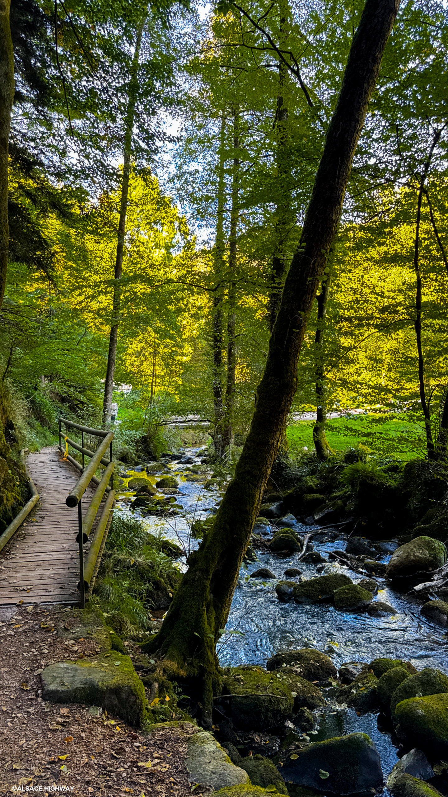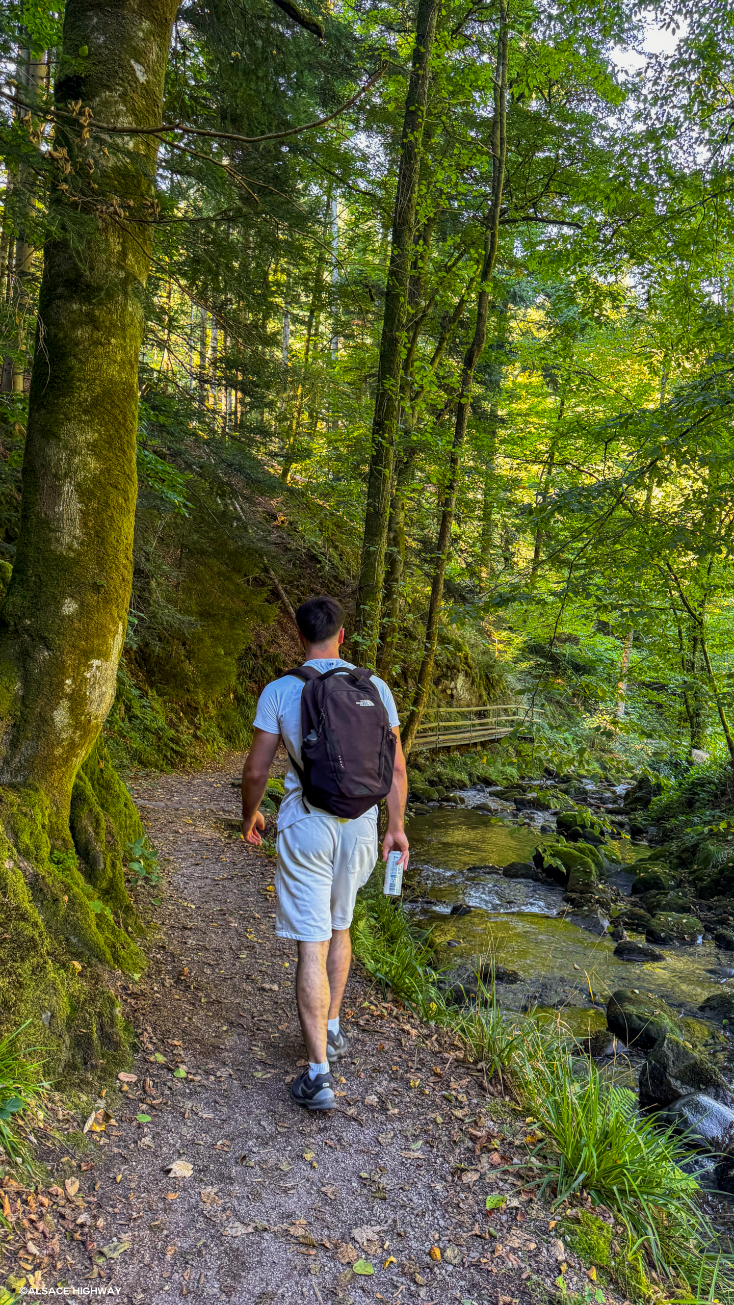 Située juste après la frontière allemande, à 1h15 de Strasbourg, 1h de Haguenau, ou 2h de Colmar, la cascade est facilement accessible depuis l’Alsace. Il suffit de te rendre au Wanderparkplatz Wasserfallstraße (à Baden-Baden, dans le quartier de Geroldsau). Là, tu trouveras un parking gratuit, bien aménagé, avec panneaux, auberge, vaches en liberté (oui oui), et même quelques bancs pour te poser avant ou après la balade.