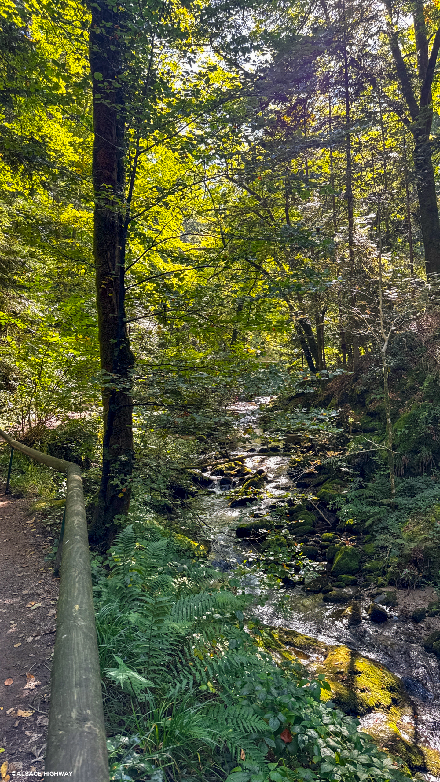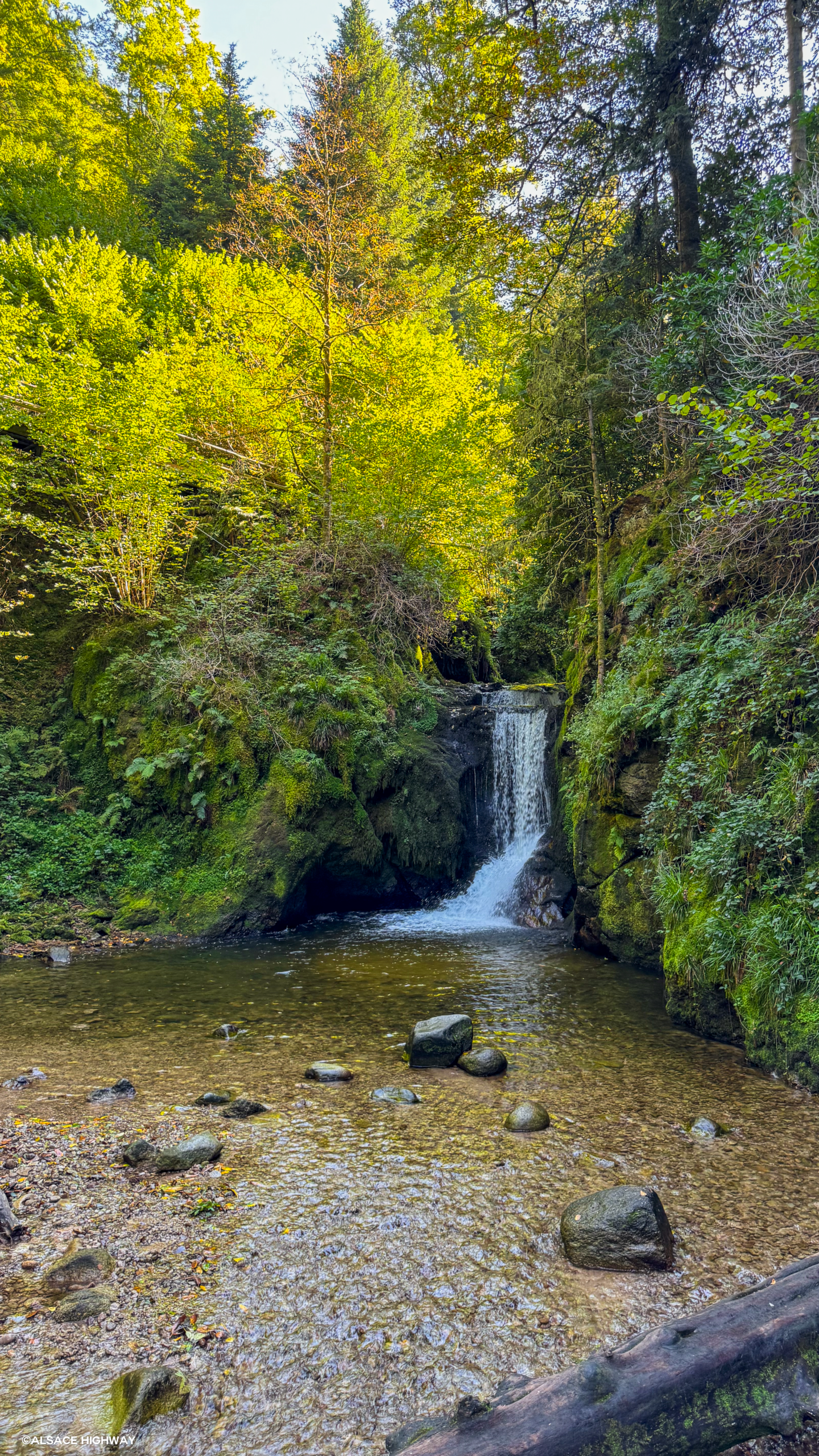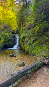 Située juste après la frontière allemande, à 1h15 de Strasbourg, 1h de Haguenau, ou 2h de Colmar, la cascade est facilement accessible depuis l’Alsace. Il suffit de te rendre au Wanderparkplatz Wasserfallstraße (à Baden-Baden, dans le quartier de Geroldsau). Là, tu trouveras un parking gratuit, bien aménagé, avec panneaux, auberge, vaches en liberté (oui oui), et même quelques bancs pour te poser avant ou après la balade.