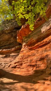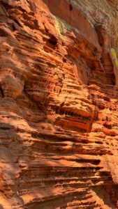 Et là, tu te retrouves face à un mur de roche flamboyant qui semble sorti d’un autre continent…