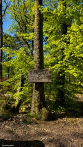 Une fois garé, tu suis le sentier balisé (rectangle rouge-blanc-rouge) qui part en forêt : c’est le début de l’aventure.