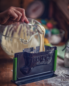 - Beurre et farine ton moule, puis verse la pâte jusqu’aux ¾.