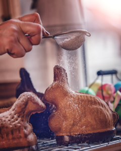 Le mot “Lamala” signifie littéralement “petit agneau” en alsacien. Ce gâteau était autrefois le premier que l’on dégustait après le Carême, pour marquer la fin du jeûne et fêter Pâques. Chaque famille avait son moule en métal bien conservé, souvent transmis de génération en génération.