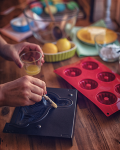 - Beurre + farine soigneusement les détails du moule
