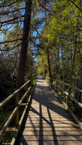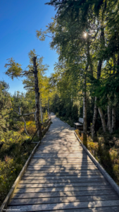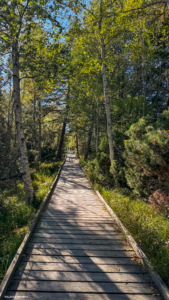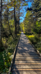 Tout au long du parcours, tu traverses des forêts profondes, longes des clairières humides, croises des cabanes en bois, et surtout… tu accèdes à plusieurs plateformes panoramiques qui surplombent la tourbière. C’est là que tu ressens toute la magie du lieu : silence absolu, brume suspendue, végétation irréelle… et parfois, un renne curieux qui t’observe.