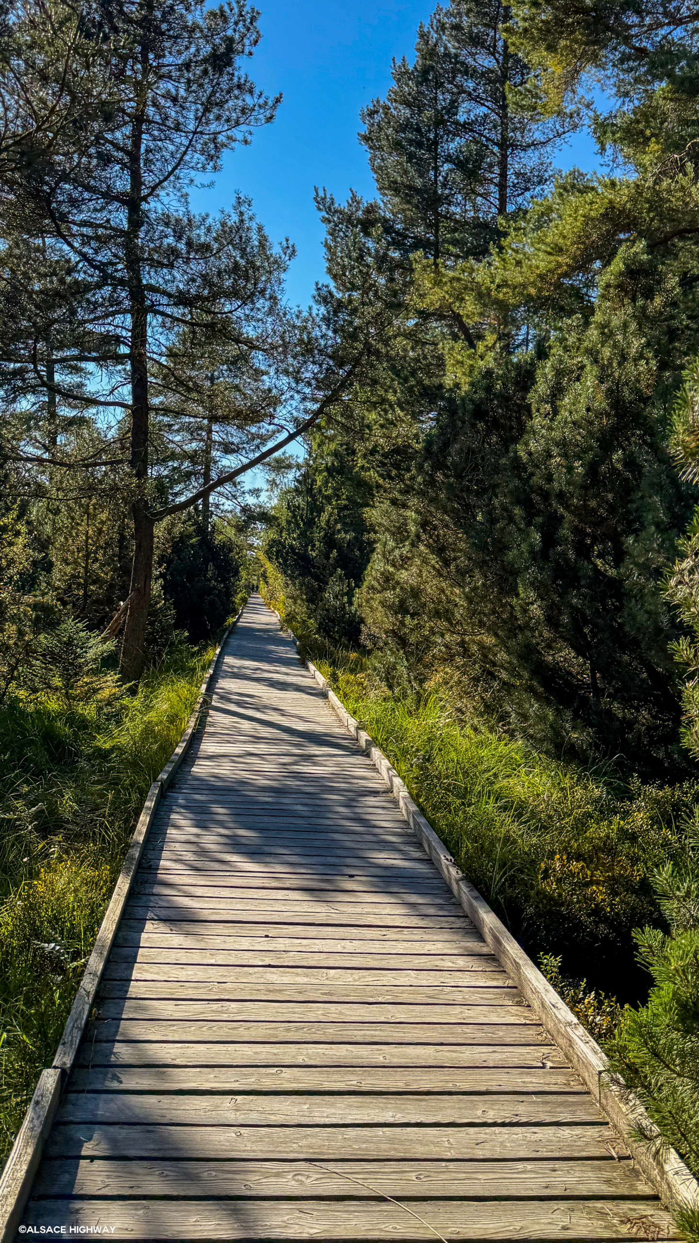 Si tu veux juste faire un petit tour (ou que t’as pas envie de marcher 2h), tu peux aussi opter pour une balade plus courte, au départ du même parking. Il te suffit de suivre les panneaux « Wildseemoor-Rundweg » pour te faire une boucle plus rapide, toujours sur passerelle, avec vue directe sur le cœur de la tourbière.