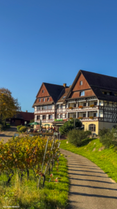Une fois revenu au parking, ne repars pas tout de suite : Sasbachwalden, c’est aussi un village viticole avec une vraie culture du bon vin et de la bonne bouffe.